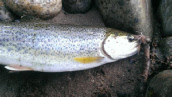 " Ok first fish caught on an Ever Dry Fly, took a few pictures and sent him on his way. Rinsed off the fly in the river, made a few false casts and just kept fishing.”
